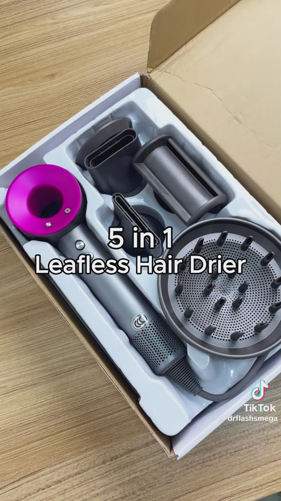 Le sèche cheveux est livrée avec un socle et 5 buses différentes pour tout types d'usage